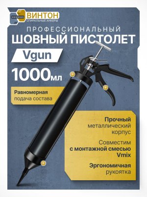 Профессиональный шовный пистолет объемом 1000 мл предназначен для заполнения швов в каменной кладке монтажным составом. Он специально разработан для работы с монтажной смесью Vmix и обеспечивает точное нанесение без лишних усилий